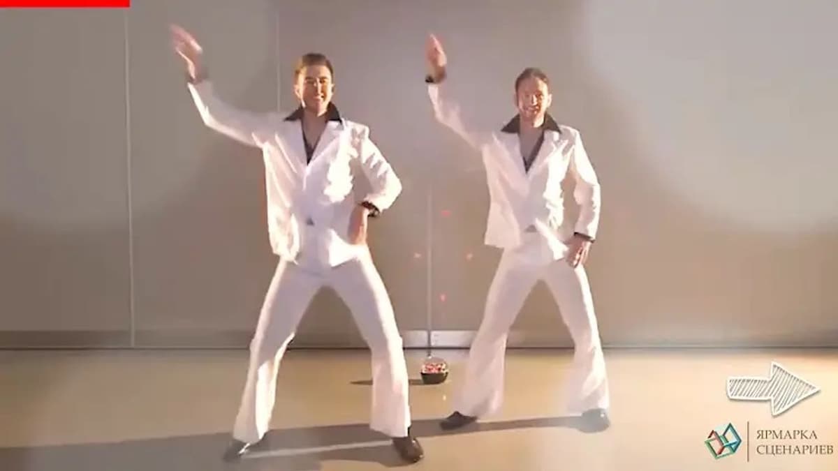 После угадывания фильма звучит музыка. Показывается видео с танцем. Команда должна повторить движения.