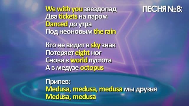 Особенность задания: в тексте песни будут чередоваться строки на русском и английском языках, создавая необычный микс